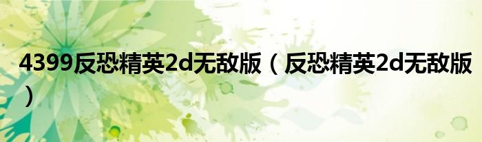 关于4399反恐精英2d无敌版,反恐精英2d无敌版这个很多人还不知道,今天菲菲来为大家解答以上的问题,现在让我们一起来看看吧!