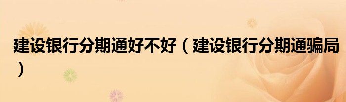 关于建设银行分期通好不好,建设银行分期通骗局这个很多人还不知道,今天菲菲来为大家解答以上的问题,现在让我们一起来看看吧!