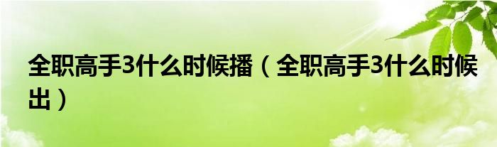 关于全职高手3什么时候播,全职高手3什么时候出这个很多人还不知道,今天菲菲来为大家解答以上的问题,现在让我们一起来看看吧!