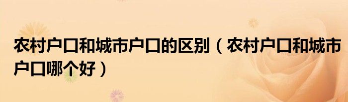 关于农村户口和城市户口的区别,农村户口和城市户口哪个好这个很多人还不知道,今天菲菲来为大家解答以上的问题,现在让我们一起来看看吧!