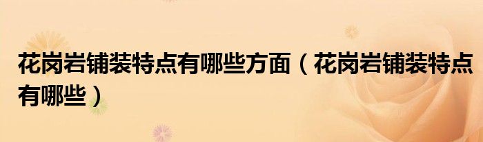 关于花岗岩铺装特点有哪些方面,花岗岩铺装特点有哪些这个很多人还不知道,今天菲菲来为大家解答以上的问题,现在让我们一起来看看吧!