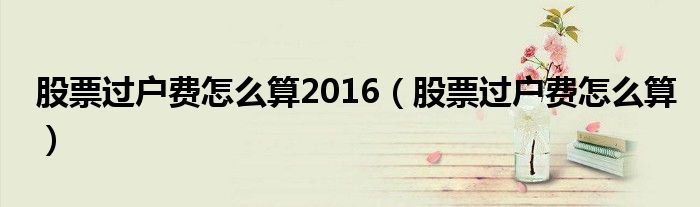 股票过户费怎么算2016(股票过户费怎么算)