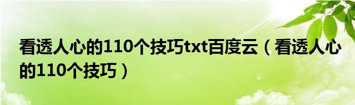 关于看透人心的110个技巧txt百度云,看透人心的110个技巧这个很多人还不知道,今天菲菲来为大家解答以上的问题,现在让我们一起来看看吧!