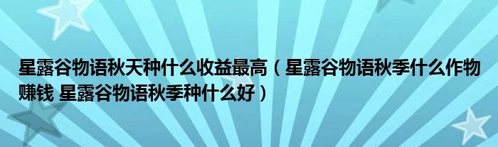 关于星露谷物语秋天种什么收益最高,星露谷物语秋季什么作物赚钱 星露谷物语秋季种什么好这个很多人还不知道,今天菲菲来为大家解答以上的问题,现在让我们一起来看看吧!