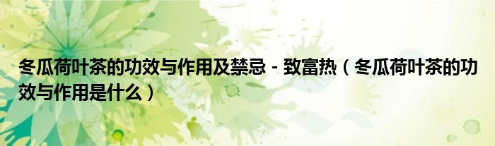 大家好,乐天来为大家解答以下的问题,冬瓜荷叶茶的功效与作用及禁忌 - 致富热,冬瓜荷叶茶的功效与作用是什么很多人还不知道,现在让我们一起来看看吧!