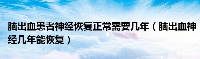 大家好,乐天来为大家解答以下的问题,脑出血患者神经恢复正常需要几年,脑出血神经几年能恢复很多人还不知道,现在让我们一起来看看吧!