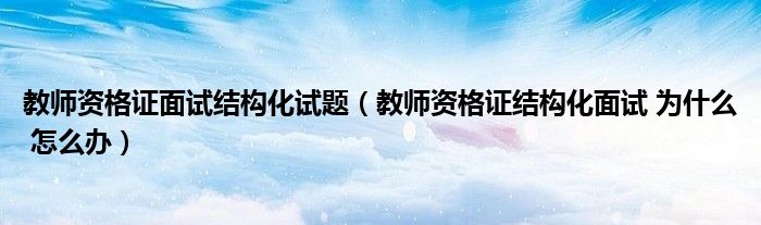 关于教师资格证面试结构化试题,教师资格证结构化面试 为什么 怎么办这个很多人还不知道,今天菲菲来为大家解答以上的问题,现在让我们一起来看看吧!