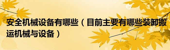 关于安全机械设备有哪些,目前主要有哪些装卸搬运机械与设备这个很多人还不知道,今天菲菲来为大家解答以上的问题,现在让我们一起来看看吧!