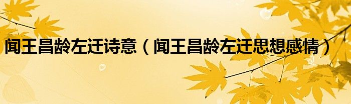 关于闻王昌龄左迁诗意,闻王昌龄左迁思想感情这个很多人还不知道,今天菲菲来为大家解答以上的问题,现在让我们一起来看看吧!