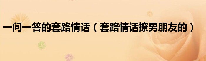 大家好,乐儿来为大家解答以下问题,一问一答的套路情话,套路情话撩男朋友的很多人还不知道,现在让我们一起来看看吧!