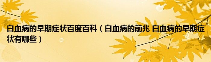 大家好,乐天来为大家解答以下的问题,白血病的早期症状百度百科,白血病的前兆 白血病的早期症状有哪些很多人还不知道,现在让我们一起来看看吧!