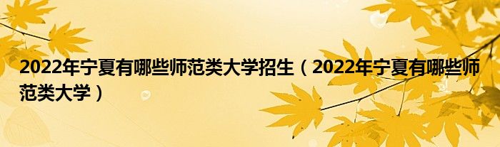 大家好,乐儿来为大家解答以下问题,2022年宁夏有哪些师范类大学招生,2022年宁夏有哪些师范类大学很多人还不知道,现在让我们一起来看看吧!
