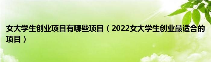 大家好,乐儿来为大家解答以下问题,女大学生创业项目有哪些项目,2022女大学生创业最适合的项目很多人还不知道,现在让我们一起来看看吧!