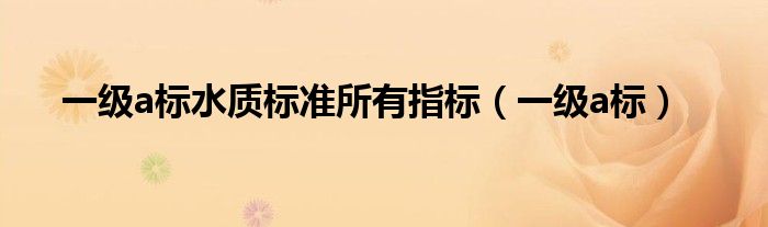 关于一级a标水质标准所有指标,一级a标这个很多人还不知道,今天菲菲来为大家解答以上的问题,现在让我们一起来看看吧!