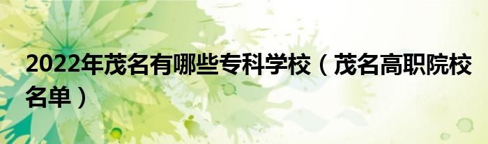 大家好,乐儿来为大家解答以下问题,2022年茂名有哪些专科学校,茂名高职院校名单很多人还不知道,现在让我们一起来看看吧!