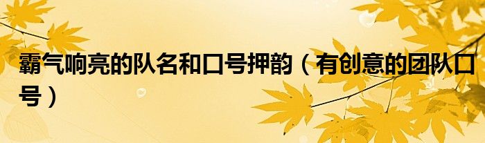 大家好,乐儿来为大家解答以下问题,霸气响亮的队名和口号押韵,有创意的团队口号很多人还不知道,现在让我们一起来看看吧!