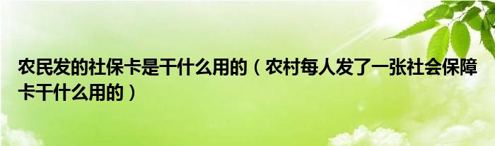 关于农民发的社保卡是干什么用的,农村每人发了一张社会保障卡干什么用的这个很多人还不知道,今天菲菲来为大家解答以上的问题,现在让我们一起来看看吧!