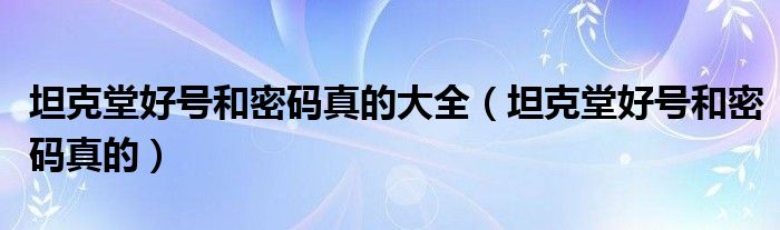 坦克堂好号和密码真的大全(坦克堂好号和密码真的)
