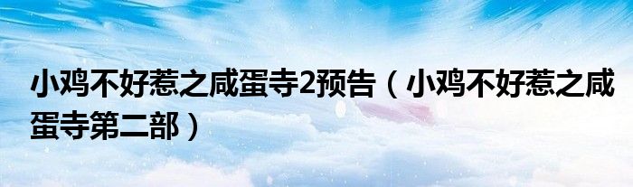 关于小鸡不好惹之咸蛋寺2预告,小鸡不好惹之咸蛋寺第二部这个很多人还不知道,今天菲菲来为大家解答以上的问题,现在让我们一起来看看吧!