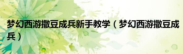 梦幻西游撒豆成兵新手教学(梦幻西游撒豆成兵)