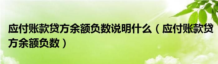 关于应付账款贷方余额负数说明什么,应付账款贷方余额负数这个很多人还不知道,今天菲菲来为大家解答以上的问题,现在让我们一起来看看吧!