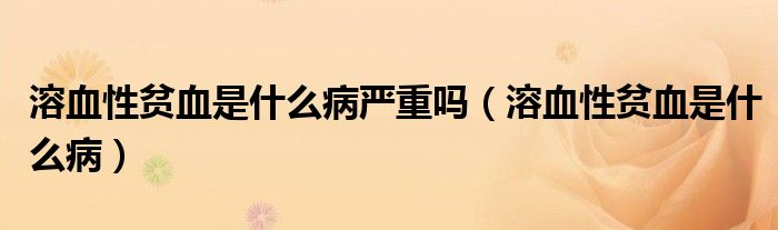大家好,乐天来为大家解答以下的问题,溶血性贫血是什么病严重吗,溶血性贫血是什么病很多人还不知道,现在让我们一起来看看吧!