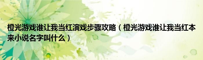 橙光游戏谁让我当红演戏步骤攻略(橙光游戏谁让我当红本来小说名字叫什么)