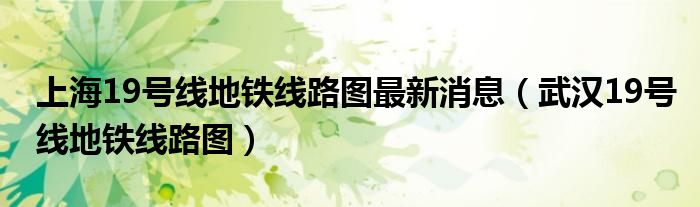 上海19号线地铁线路图最新消息(武汉19号线地铁线路图)