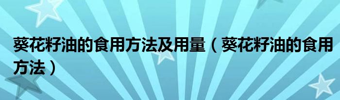葵花籽油的食用方法及用量(葵花籽油的食用方法)