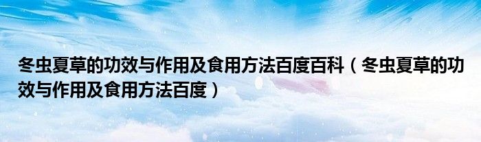 冬虫夏草的功效与作用及食用方法百度百科(冬虫夏草的功效与作用及食用方法百度)