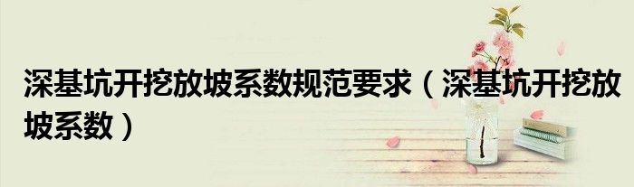 关于深基坑开挖放坡系数规范要求,深基坑开挖放坡系数这个很多人还不知道,今天菲菲来为大家解答以上的问题,现在让我们一起来看看吧!
