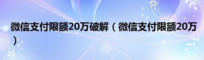 微信支付限额20万破解(微信支付限额20万)
