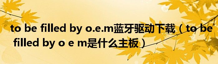 关于to be filled by o.e.m蓝牙驱动下载,to be filled by o e m是什么主板这个很多人还不知道,今天菲菲来为大家解答以上的问题,现在让我们一起来看看吧!
