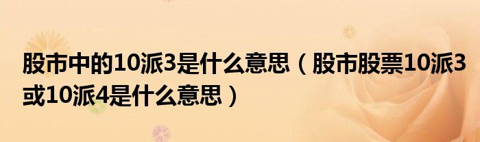 关于股市中的10派3是什么意思,股市股票10派3或10派4是什么意思这个很多人还不知道,今天菲菲来为大家解答以上的问题,现在让我们一起来看看吧!