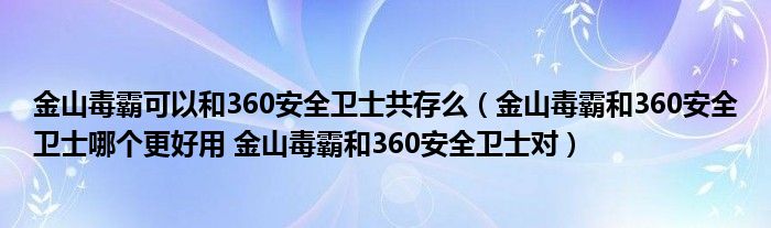 大家好,小联来为大家解答以上的问题。金山毒霸可以和360安全卫士共存么,金山毒霸和360安全卫士哪个更好用 金山毒霸和360安全卫士对这个很多人还不知道,现在让我们一起来看看吧!