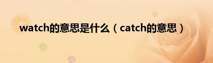 关于watch的意思是什么,catch的意思这个很多人还不知道,今天菲菲来为大家解答以上的问题,现在让我们一起来看看吧!
