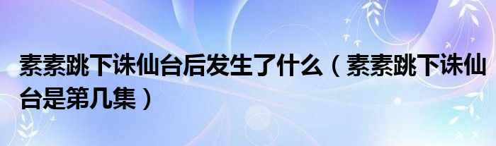 关于素素跳下诛仙台后发生了什么,素素跳下诛仙台是第几集这个很多人还不知道,今天菲菲来为大家解答以上的问题,现在让我们一起来看看吧!