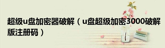 大家好,小联来为大家解答以上的问题。超级u盘加密器破解,u盘超级加密3000破解版注册码这个很多人还不知道,现在让我们一起来看看吧!