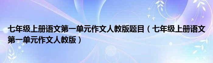 大家好,小联来为大家解答以上的问题。七年级上册语文第一单元作文人教版题目,七年级上册语文第一单元作文人教版这个很多人还不知道,现在让我们一起来看看吧!