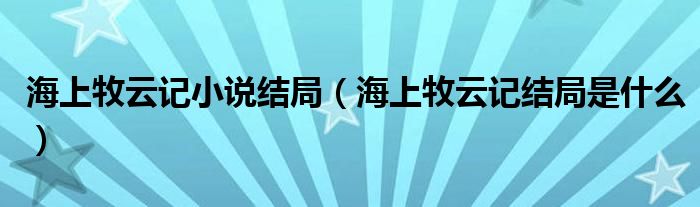 各位网友们好,我是编辑小夏,为大家解答海上牧云记小说结局,海上牧云记结局是什么问题。一起往下看看