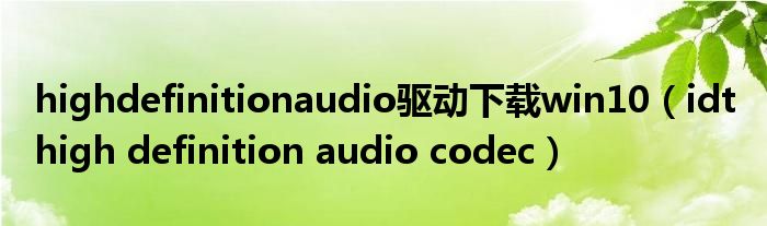 大家好,我是小科,我来为大家解答以上问题。highdefinitionaudio驱动下载win10,idt high definition audio codec很多人还不知道,现在让我们一起来看看吧!