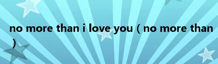 大家好,小联来为大家解答以上的问题。no more than i love you,no more than这个很多人还不知道,现在让我们一起来看看吧!