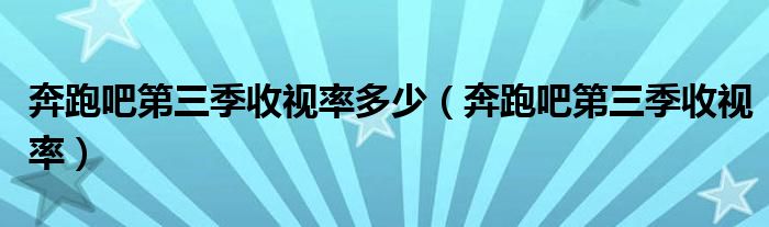 大家好,我是小科,我来为大家解答以上问题。奔跑吧第三季收视率多少,奔跑吧第三季收视率很多人还不知道,现在让我们一起来看看吧!