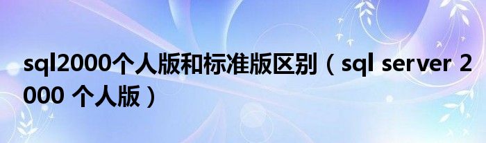 今天小饼为大家解答以下问题,关于sql2000个人版和标准版区别,sql server 2000 个人版很多人还不知道,现在让我们一起来看看吧!