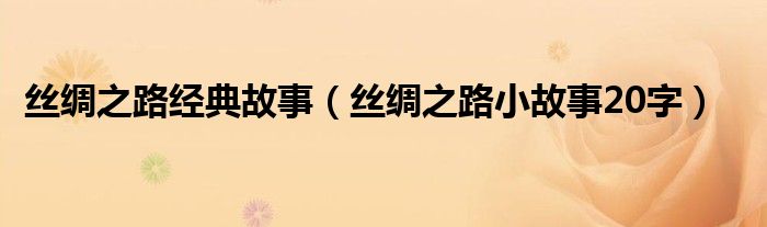 最佳答案大家好,我是小科,我来为大家解答以上问题。丝绸之路经典故事,丝绸之路小故事20字很多人还不知道,现在让我们一起来看看吧!1、丝绸之路的故事20字:张骞出使西域开辟的主要贩运中国丝绸的商道。2、丝绸之路,简称丝路,是指西汉(前202年—8年)时,由张骞出使西域开辟的以长安(今西安)为起点...