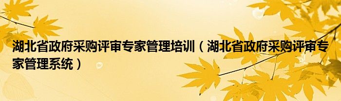 湖北省政府采购评审专家管理培训(湖北省政府采购评审专家管理系统)