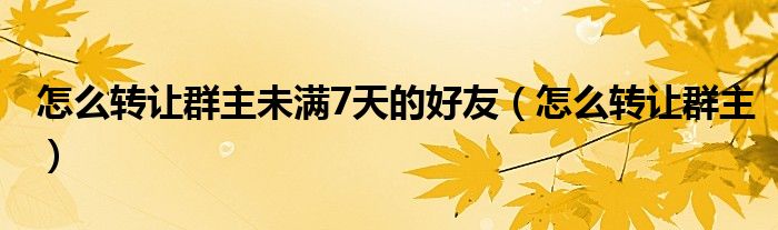大家好,小晋来为大家解答以下问题,关于怎么转让群主未满7天的好友,怎么转让群主很多人还不知道,今天让我们一起来看看吧!