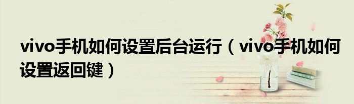 大家好,小夏来为大家讲解下。vivo手机如何设置后台运行,vivo手机如何设置返回键很多人还不知道,现在让我们一起来看看吧!
