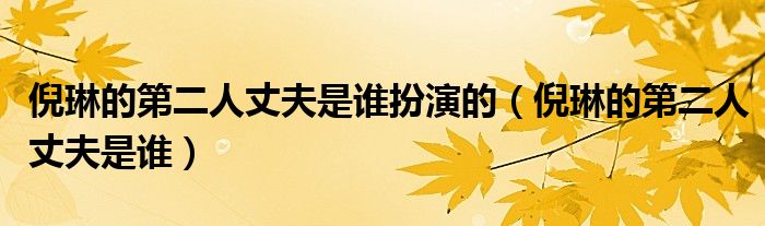 关于倪琳的第二人丈夫是谁扮演的,倪琳的第二人丈夫是谁这个很多人还不知道,今天菲菲来为大家解答以上的问题,现在让我们一起来看看吧!