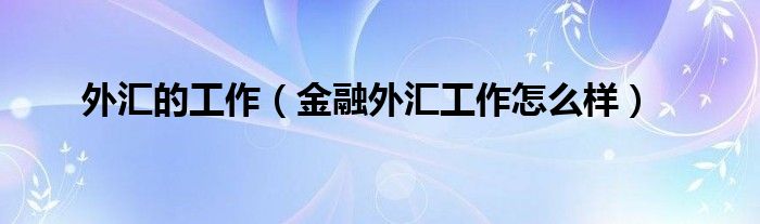 大家好,小晋来为大家解答以下问题,关于外汇的工作,金融外汇工作怎么样很多人还不知道,今天让我们一起来看看吧!